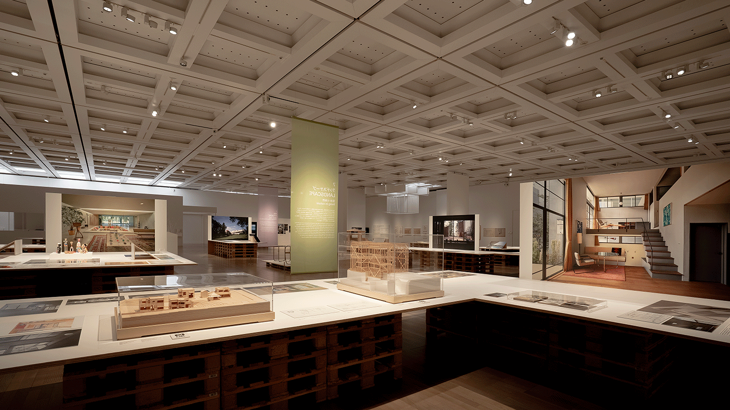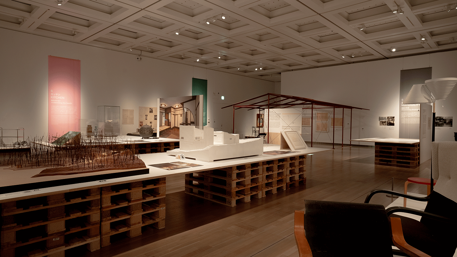 1Fは傑作14邸を中心に、モダン・ハウスを特徴づける7つの観点に着目して再考され、20世紀の住まいの実験を多角的に検証した。その展示物に合わせて照明計画を行った。
