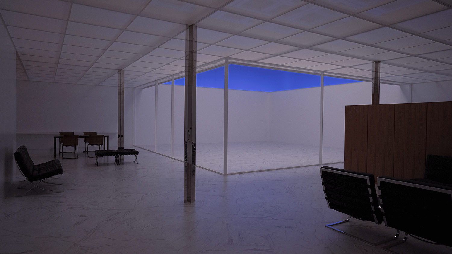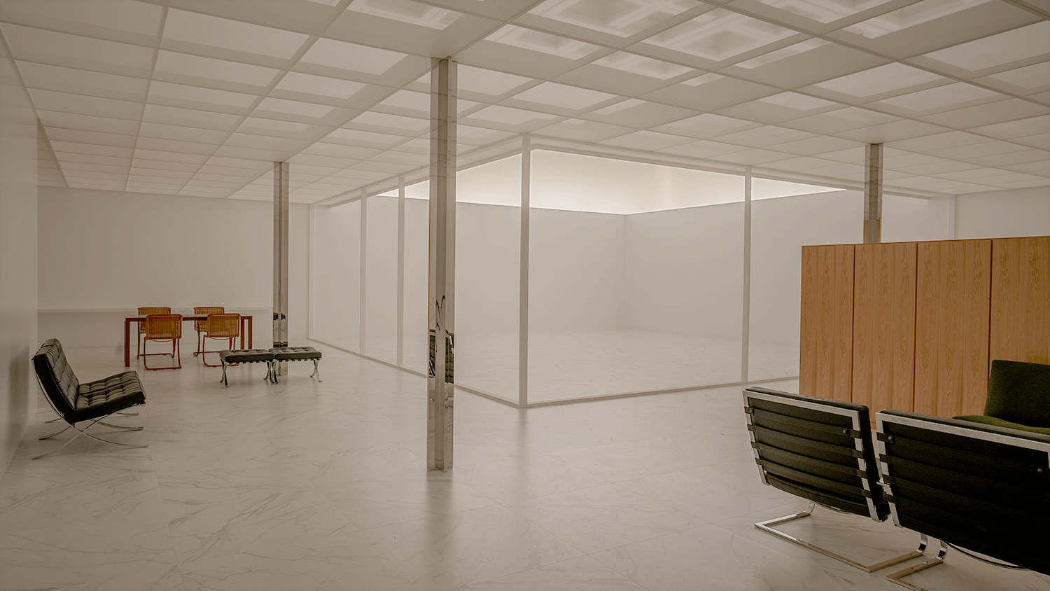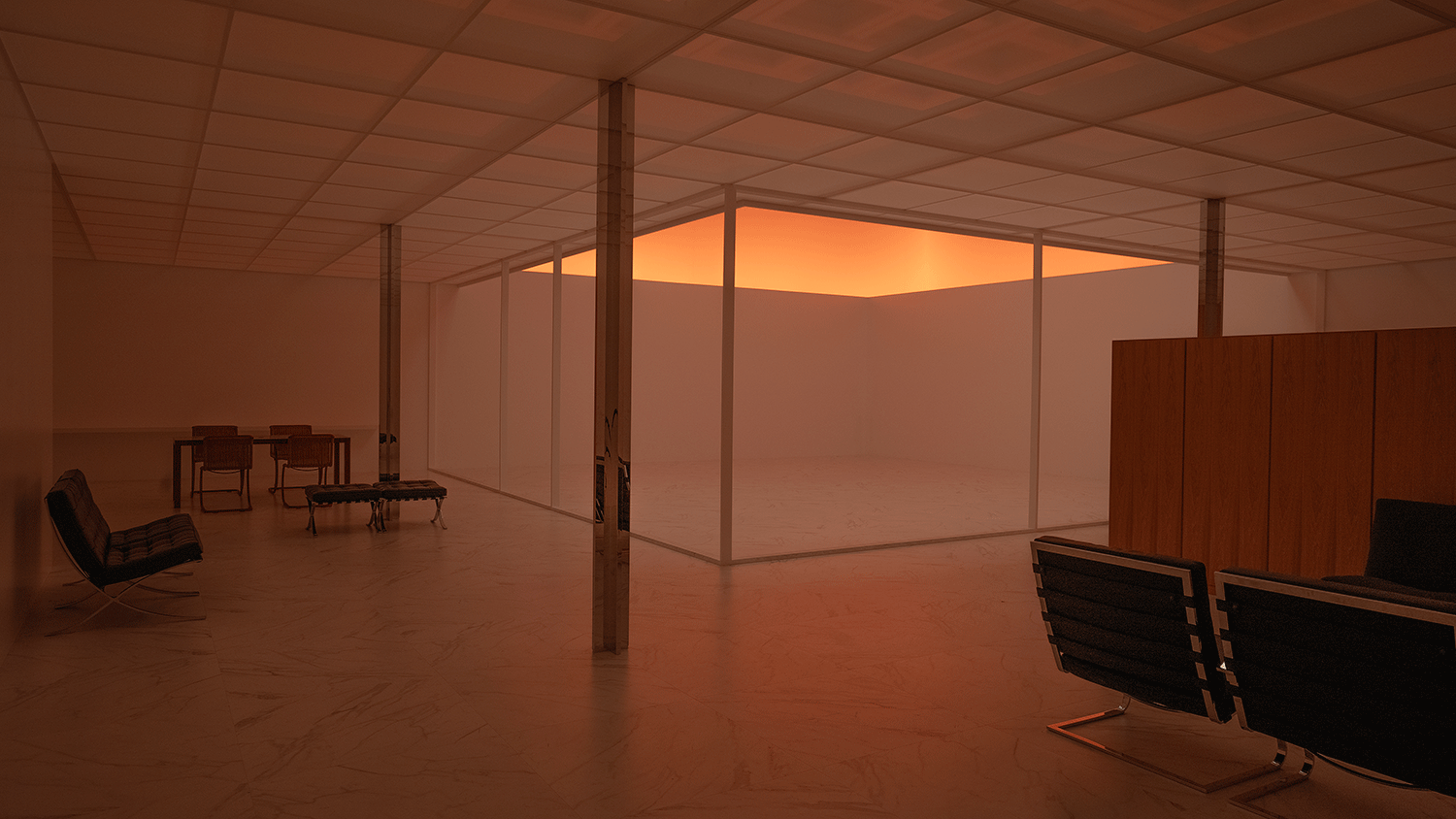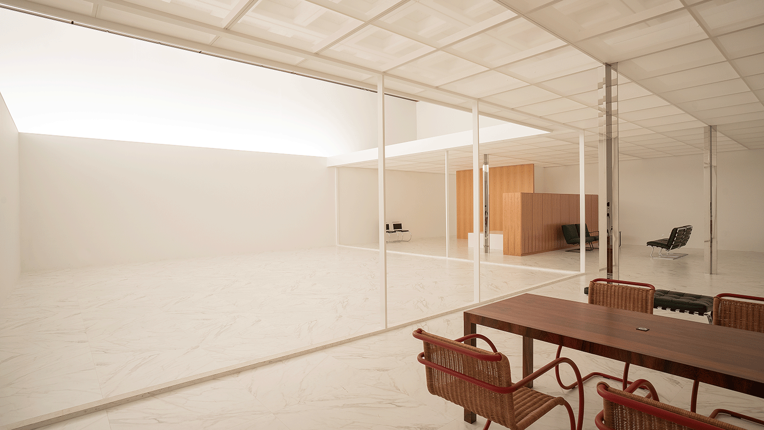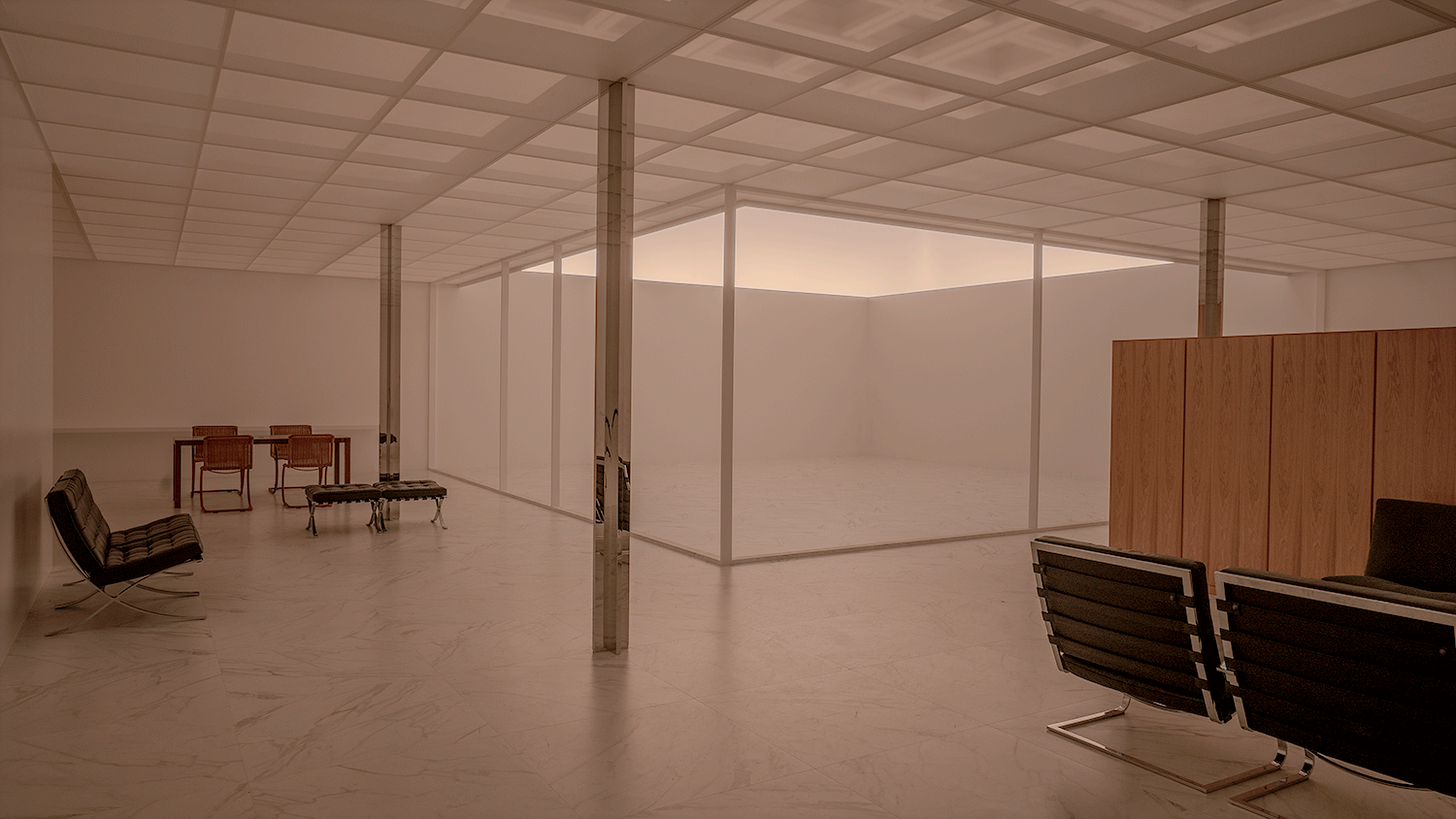 2Fでは、ミース・ファン・デル・ローエが計画案のみを残した未完のプロジェクト「ロー・ハウス」が世界で初めて原寸大で実現された。一日の太陽の光を約6分のカラーシーンで再現し、光によって変化する空間を体験できる展示となった。